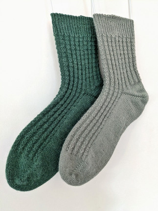 Late last year I knitted a few of these for family and they've all been gifted now so I won't be ruining any surprises by sharing the pattern! These socks use a stitch pattern commonly referred to as Pique Rib. This has a squashy and raised texture that feels warm and comforting but the stitch pattern is essentially 2x2 ribbing. You create the raised line of stitches by simply working all purl stitches on the fourth row.